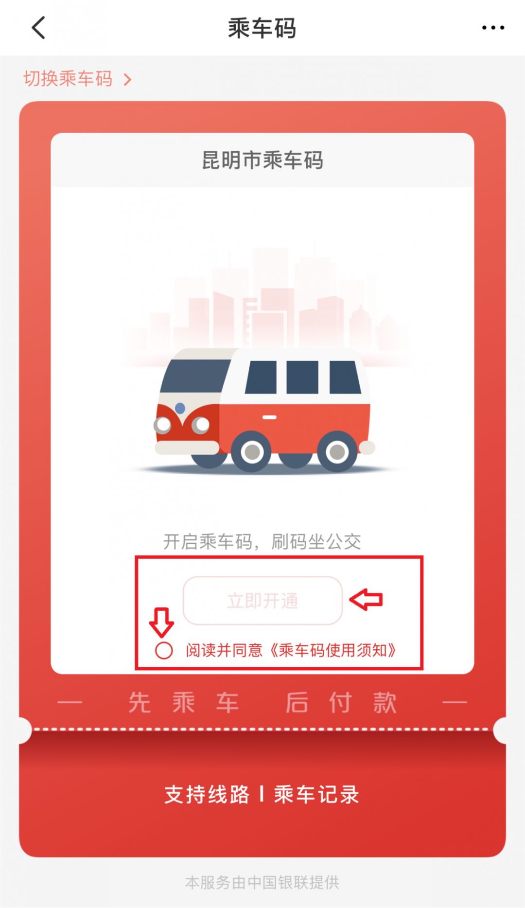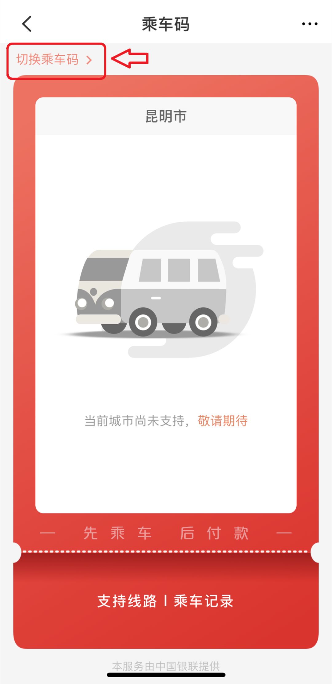 第二步 点击“切换乘车码”—选择“昆明市乘车码” |