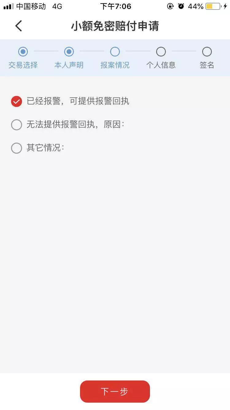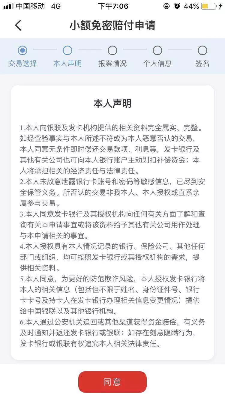 在此前商业银行通过银行网点、客服电话等渠道提供赔付申请服务的基础上,为进一步缩短闪付小额免密业务的赔付时限、提升赔付效率,确保持卡人赔付申请获得快速处理,云闪付APP安全中心新增线上赔付申请受理通道。已在云闪付APP绑卡的持卡人可更新至最新版本云闪付APP,进入卡管理页面,通过已绑定银行卡的“卡片服务”进入“安全中心”,选择“闪付小额免密赔付申请”功能在线提交赔付申请,仅需通过“交易选择、本人声明同意、报案情况确认、个人信息填写及电子签名”等五个步骤即可完成提交,发卡机构及银联审核通过后,持卡人即可获得损失赔付。同时,在提交赔付申请的第二个工作日,用户可通过“赔付进度查询”功能自助查询赔付申请中各笔交易的处理进度。