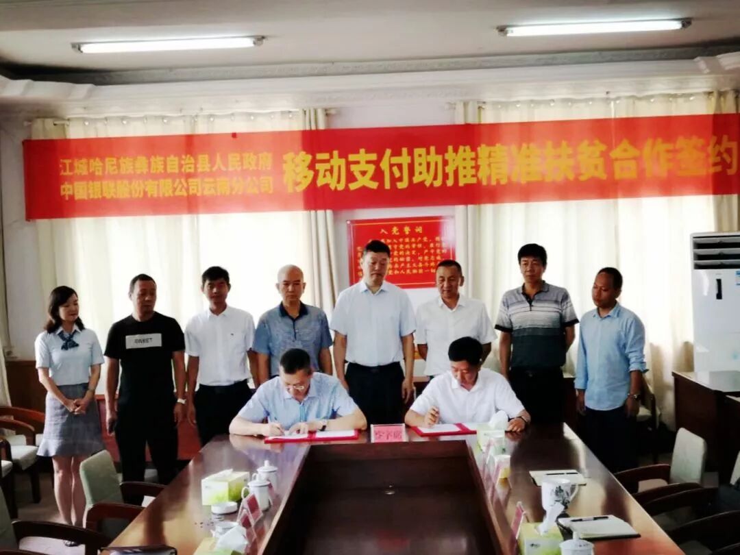2019年7月4日,在人民银行的组织推动下,中国银联股份有限公司云南分公司与江城哈尼族彝族自治县人民政府举行移动支付助推精准扶贫合作签约仪式,签署了共建协议,首次实现以银联移动支付的金融手段助推脱贫攻坚。