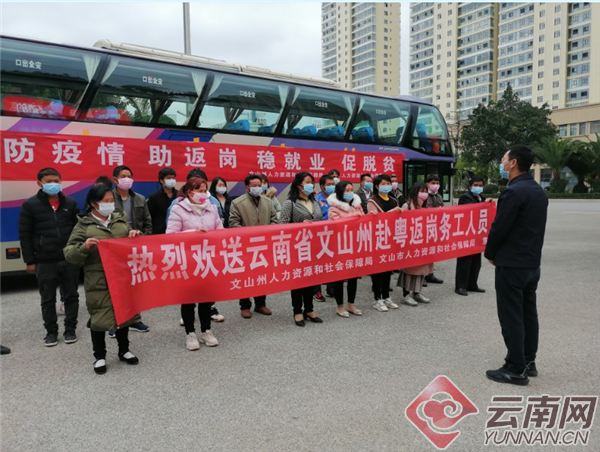 云南网讯(记者 杨萍)2月16日上午,文山壮族苗族自治州务工人员赴粤返岗欢送仪式在文山市政务服务中心举行,标志着全州务工人员返岗复工工作全面启动。截至目前,全州实现劳动力转移就业11.82万人,其中有组织输出1471人。据悉,本月内文山州还将组织不少于600人返岗就业,并安排专人在广东做好返岗复工服务工作。