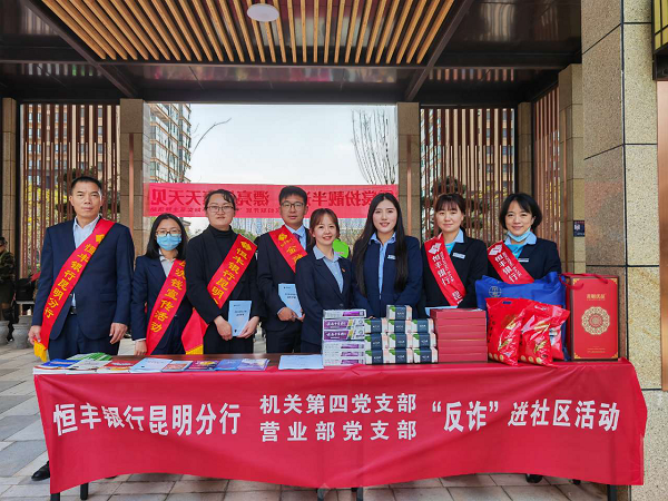 在“3·15”国际消费者权益保护日来临之际,恒丰银行昆明分行运营管理部“运营服务先锋队”、机关第四党支部、分行营业部党支部联动分支机构深入昆明官渡区小街社区,开展金融知识集中宣传活动。