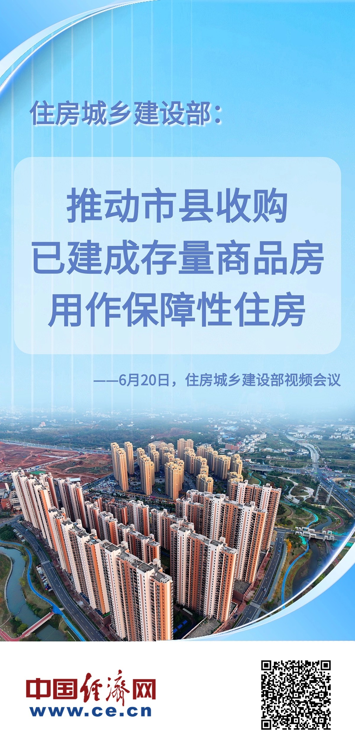 6月20日,住房城乡建设部召开收购已建成存量商品房用作保障性住房工作视频会议,要求推动县级以上城市有力有序有效开展收购已建成存量商品房用作保障性住房工作。