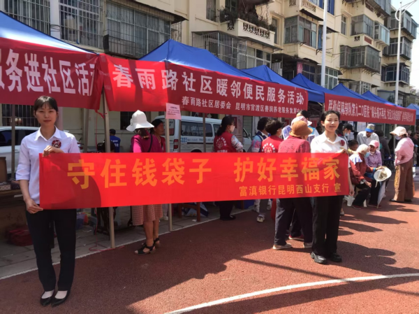 为切实保护老年人的财产安全,维护消费者权益,有效预防金融风险,近日,富滇银行昆明西山支行与春雨路社区共同举办了一场针对社区居民中老年人的金融消费者权益保护宣传活动,帮助社区老年群体提高风险防范意识和金融素养,共同构建和谐社区。