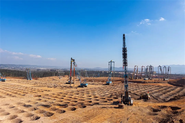 云南绿色低碳示范产业园位于红河州泸西县,是云南省“绿电+先进制造业”产业布局的重点项目,以“绿色、低碳、循环、智能”为定位,瞄准打造国内铝产业绿色低碳发展标杆,建成后预计年产值达1000亿元以上。集团承建部分包括土石方工程,抗滑桩、边坡防护工程,盲排系统工程,道路工程等,2022年9月11日进场开工,2023年12月30日场平工程完工,目前正配合业主单位开展道路建设、绿化建设、生态恢复等配套施工。