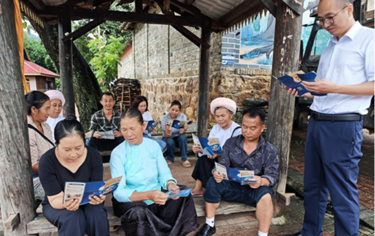 村民俸阿姨说:“以前那些干巴巴的知识我们听不懂也记不住,今天富滇银行的工作人员拿诈骗案例考我们,问我们‘如果有人打电话说中奖了,要先交税才能领奖,能不能交税’,用这种方法一说我们就懂了。”