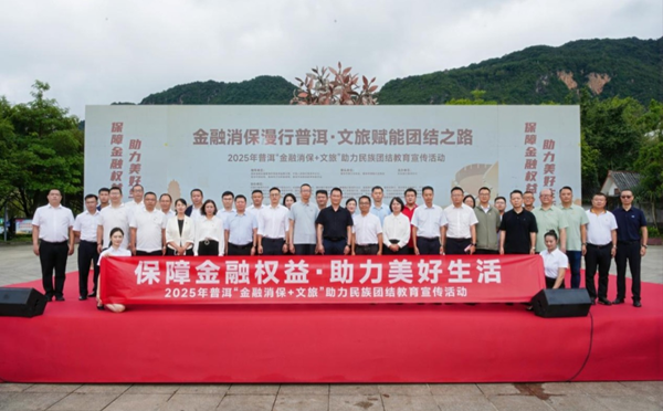 近日,“金融消保漫行普洱·文旅赋能团结之路——2025普洱‘金融消保+文旅’助力民族团结教育宣传活动”在宁洱茶源广场正式启动。富滇银行普洱分行高度重视、积极响应、精心筹备,旨在通过活动,将金融知识融入文旅场景,以“主会场集中宣教,全市九进专场”多面推进的形式,构建多元化、全方位金融教育体系,切实提升各族群众的风险防范意识和自我保护能力。