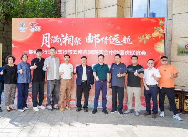 9月20日,邮储银行昆明市呈贡春融街支行(简称昆明市呈贡支行)与云南省湖南商会联合举办“月满湘聚 邮情远航”中秋国庆联谊会。