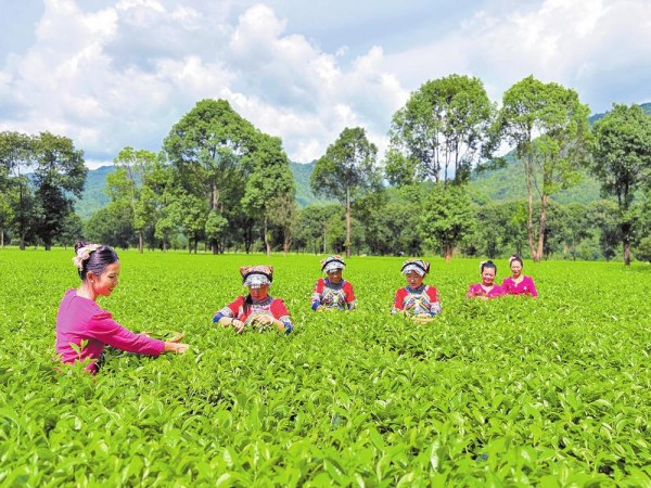 耿马傣族佤族自治县勐撒镇茶农采摘秋茶。记者 李春林 摄