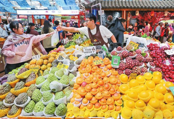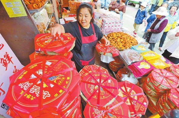 国庆中秋双节临近,我省节日市场红红火火、购销两旺。在昆明大观篆新农贸市场,节前采购的市民和游客络绎不绝,时令水果、蔬菜肉食、海鲜水产、中秋大饼等商品琳琅满目,市场供应充足,价格稳定。(记者 杨峥 陈飞 摄)
