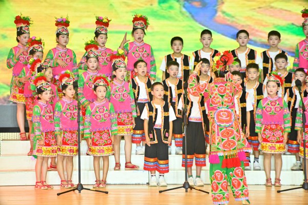 展演现场,孩子们以歌传情、以舞筑梦,以“共绘美丽家乡,传承优秀文化,展现新时代青少年‘向真、向善、向美、向上’精神风貌”为核心,通过“序·山水清音”“韵·各族欢歌”“梦·筑梦华章”三个篇章层层递进,生动展现巍山校园美育的丰硕成果与青少年的昂扬精神风貌。