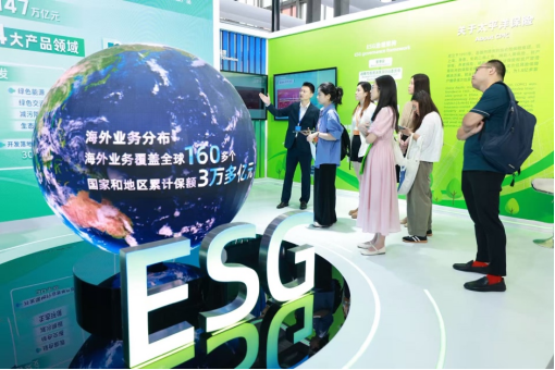 步入中国太保展厅,位于正中的地球装置格外吸睛。地球模型表面清晰展现着陆地与海洋的分布,仿佛将我们赖以生存的星球“搬”到了展厅现场。地球模型上显示,中国太保海外业务覆盖全球160多个国家和地区,累计保额3万多亿元,海外服务网络直连20余个境外保险企业……模型下方“ESG”三个字母以亮眼的渐变色彩呈现,在灯光映照下,与地球模型相互呼应,展示中国太保全球业务布局的同时,象征着中国太保对守护共同地球家园的庄严承诺。