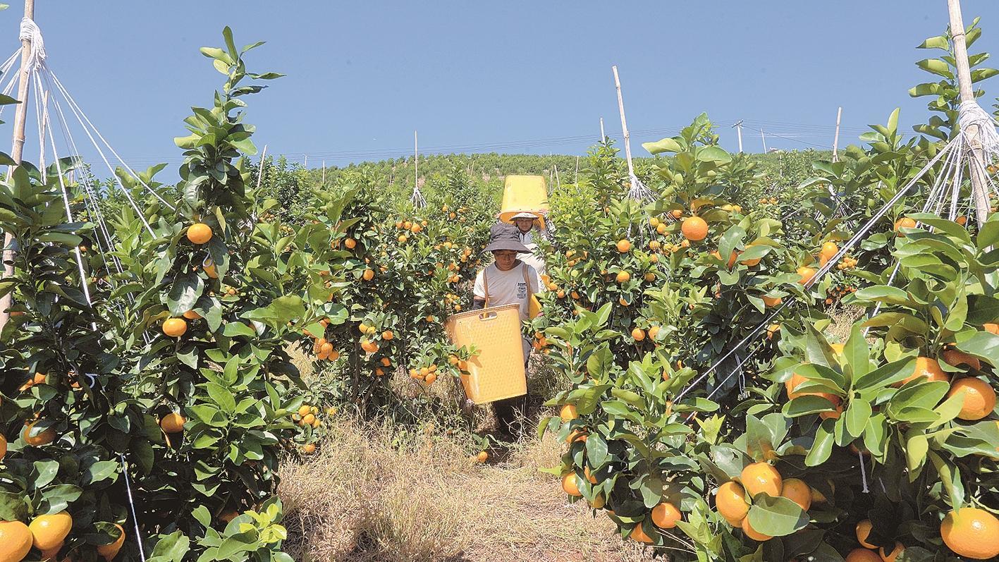 果农进入橘园采摘金秋砂糖橘。(摄于10月13日)