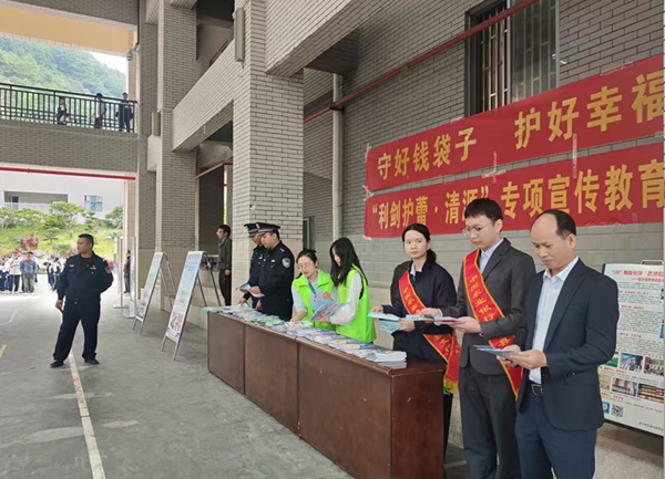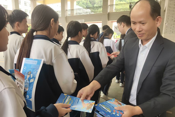 为破解学生群体“易轻信、缺经验、涉网多”的反诈薄弱环节,筑牢反诈安全防线,近日,富滇银行文山富宁支行携手国家金融监督管理总局富宁监管支局、县域内多家金融机构及公安反诈中心,走进富宁县思源实验中学,以“青春无诈・财商护航”为主题,面向该校师生开展反诈知识宣传活动,为学生提供从“识别骗局”到“正确应对”的全链条引导,为校园安全增添坚实保障。