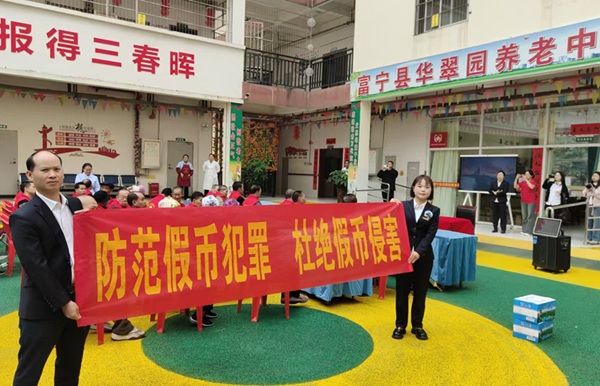 当前,养老诈骗案件中,“假币调包”“用假币换老人现金”等手段高发,养老院群体因对新版货币特征不熟悉、辨别能力较弱、防范意识不足,成为假币犯罪重点侵害对象。为切实守护老年人的“钱袋子”,富滇银行文山富宁支行主动联合国家金融监督管理总局富宁监管支局、县域内多家金融机构,将金融服务送到老人“家门口”,力求通过通俗化、场景化的宣传,让老人们掌握假币辨别技能。