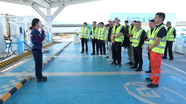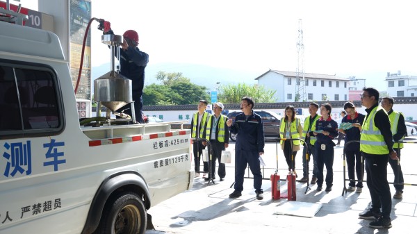 实地参观环节,嘉宾依次参观了大新寨加能站的充电区、换电区、易捷便利店、加油区及洗车区等功能区域。工作人员详细介绍了中国石化在新能源业务方面的布局,包括“石化易电”充电品牌、与蔚来合作的换电业务,以及“易捷”线上线下融合的营销体系。在加油区,红河州质量技术监督综合检测中心专业人员现场讲解油品质量与计量知识,展示企业在安全管理与精准服务方面的规范操作,进一步增强公众对“质优量足”的理解与信赖。