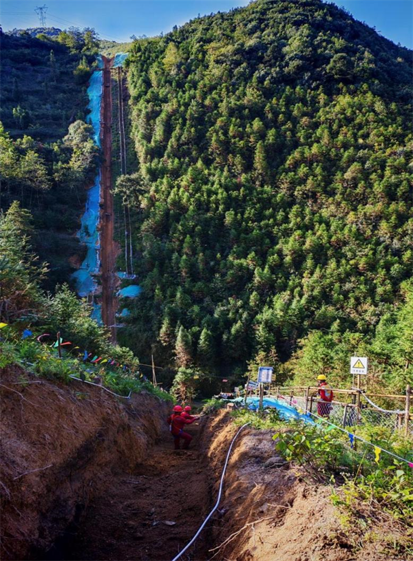 由于BB2281高陡坡段地势陡峭,工程机械设备无法到达,管沟开挖只能采取人工方式。工程利用现有地形搭设索道,将管材、焊接设备及后期水工保护材料运送至前后山上,保证了施工进度。