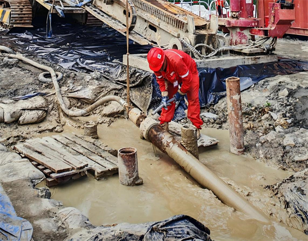 与常规穿越工程不同,谷拉河管道深埋河床之下,需同步应对水流冲刷、河床沉降及潜在地震活动等复合风险。谷拉河定向钻最大埋深处为60米,最小埋深处为15.88米,在定向钻穿越施工中,工程采用“有线控向+陀螺仪控向”双系统协同技术,有线控向依托“小磁怪”地磁系统实现100米以上深度精确探测,陀螺仪系统具备自寻北、抗震强等优势,双控协同让穿越误差“趋近于零”,为地下穿越施工筑起安全防线。施工中采用“分级扩孔+泥浆固化”工艺,通过实时监测调整泥浆配比,形成稳定护壁,防止塌孔导致管道损伤。目前,项目第一次扩孔工作已经完成,正在进行第二次扩孔施工作业。