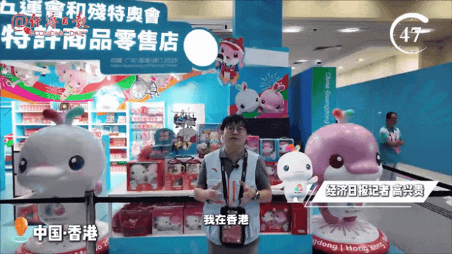 经济日报记者高兴贵:我在香港观察到的,是一种奇妙的“化学反应”。首先,设计师将广东的木棉红、香港的紫荆紫、澳门的莲花绿融入了吉祥物,这个细节在港澳特别能引发观众的共鸣。同时,我采访了几位本地观众,他们对吉祥物的“大湾鸡”这个昵称接受度非常高,觉得它“好得意,好亲切”。粤语文化里的幽默感,让这个官方符号一下子有了地气。我在现场还看到很多基于吉祥物的特色活动,比如主题拍照墙、亲子绘画区等。
