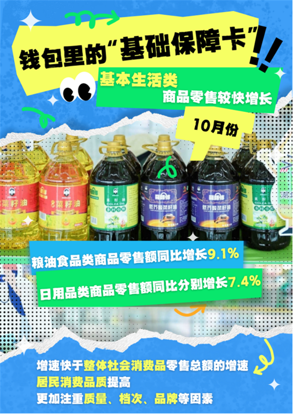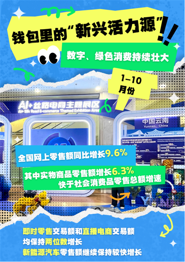 今年以来,各地区、各部门深入推进提振消费专项行动,加力扩围实施消费品以旧换新,大力发展数字消费和服务消费,扩大文体消费,推动消费潜力释放。11月14日,国新办举行新闻发布会,介绍2025年10月国民经济运行情况。一组海报,数览10月我国消费市场亮点,探寻钱包多样“打开方式”。