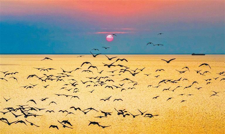 11月21日,河南黄河湿地国家级自然保护区孟州段,各类候鸟成群结队来此越冬。 白水平摄(中经视觉)