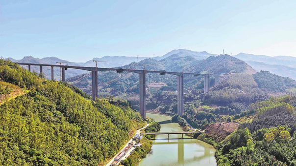 南盘江特大桥全长948米,最大墩高160米,最大跨度180米,设10个合龙段。大桥自2021年5月开始施工以来,参建单位克服了地质复杂、高空作业、生态环保、森林防火等施工难题,通过严格管理、规范施工,历时1242天顺利完成合龙任务。