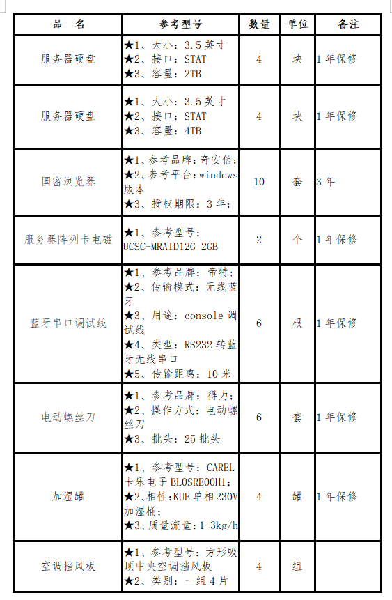 2.2采购内容:为充分利用老旧服务器交换机等设备资源及设备出现自然损耗,申请采购一批硬盘、国密浏览器、服务器阵列卡电池、交换机等配件设备一批。配件明细参见如下: