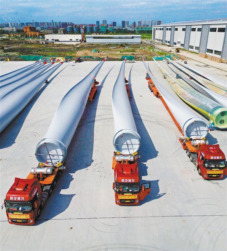 9月16日,位于大庆高新区的明阳风电高端装备制造产业基地,已经出库的主机、叶片排列有序,等待运输出厂。孙 娜摄(中经视觉)