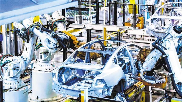 8月6日,位于大庆市龙凤区的沃尔沃汽车大庆工厂高度智能化生产线。大庆以推进绿色制造为抓手,持续打造绿色工厂,培育了大庆沃尔沃、伊利乳业等国家级绿色工厂6家。(大庆日报供图)