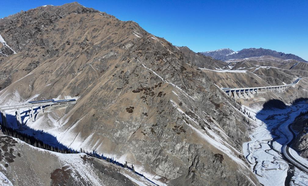 桥隧相连的乌尉高速穿越天山山脉。新华社记者 王菲 摄