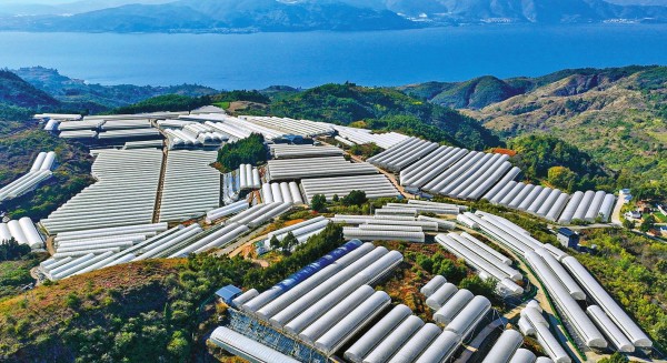 近年来,澄江市大力盘活土地资源,构建全域“一张耕地网”,优化产业布局,引入18家企业投资21.38亿元,并联动7家金融机构放贷21.5亿元,全面推进现代设施农业发展。截至目前,澄江市已建成露天滴灌6.3万亩、水肥一体化3.2万亩,各类设施农业用地占耕地总面积超56%,有效推动了设施农业提质增效。图为无人机航拍的龙街街道万海社区绿康庄园蓝莓种植基地。(记者 曾永洪 摄)
