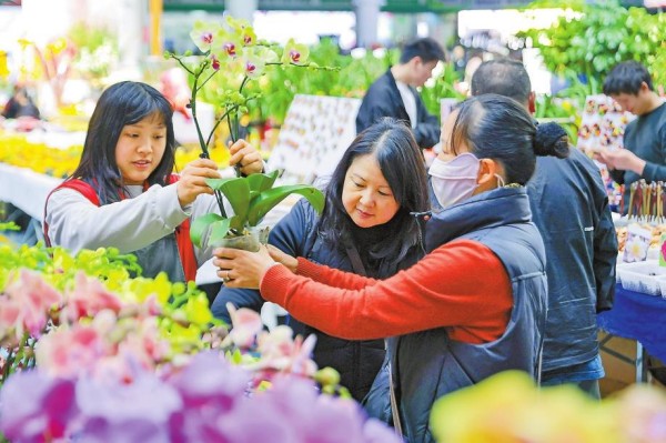 进入腊月以来,年货市场年味愈浓,消费升温。在昆明俊发·新螺蛳湾商贸城新春饰品专区,以马年为主题的各类饰品热销;斗南花市迎来“年宵花时节”,蝴蝶兰、冬青、永生花等成为市民装扮家居、馈赠亲友的热门选择,带动销量稳步上升。各地特色年货走俏,传统节庆消费市场购销两旺。(记者 胡妤雅 摄)