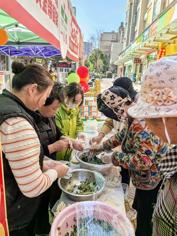 若论现场人气最旺、笑声最密集的角落,则非三公仔制药打造的饺子专区莫属。工作人员与闻讯而来的社区阿姨们围站一起,熟练地和馅、擀皮、包捏,动作流畅,默契十足。不一会儿,一排排饱满圆润的饺子便整齐列队。这些承载着邻里协作温情的饺子,被细心分装进保鲜盒,让居民能够便捷地将这份现场制作的新鲜与暖意带回家中,与家人共享。