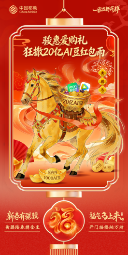 备年货,迎新春,怎么买年货更省钱?上中国移动APP,省出新花样!“骏惠爱购礼”狂撒20亿AI豆,助你省钱购好物,新春囤货超划算。用户进入中国移动APP搜索“红包雨”,就能直达活动页,参与AI豆红包雨互动,单次至高可得1000AI豆。