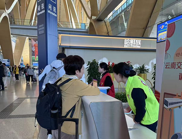 为积极响应共青团云南省金融工作委员会2026年青年志愿服务“暖冬行动”号召,深入践行金融为民、服务社会的责任担当,富滇银行昆明滇中新区支行紧抓春运节点昆明长水国际机场客流密集、受众覆盖面广的宣传契机,赴机场开展了为期三天的“金融知识伴您温暖同行”主题宣传活动。活动面向广大旅客,重点聚焦返乡务工人员、学生、老年群体及外地游客等群体,普及金融知识,切实提升公众金融素养与风险防范意识,以金融力量传递民生温度,用富滇行动守护旅途平安。