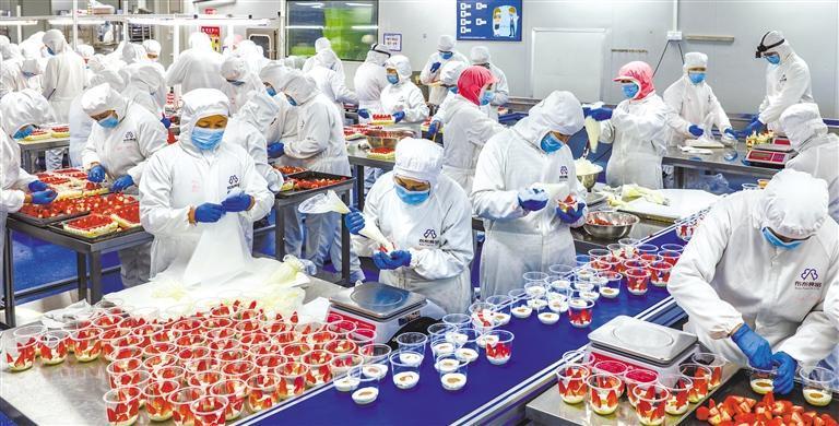 2月13日,位于江苏省南京市溧水区永阳工业园的南京布布食品有限公司,员工在赶制新鲜食品,保障新春节日需求。