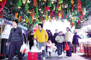 大观篆新农贸市场人头攒动。记者 杨艳辉 摄