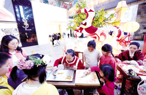 市民游客在商圈里感受非遗年味。记者 杨艳辉 摄