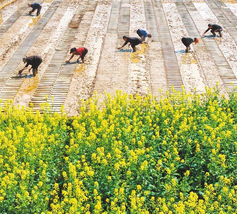 3月9日,河北省唐山市丰南区大新庄镇大岭子村,农民在田间播种马铃薯。李秀清摄(中经视觉)
