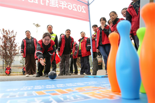 中午11点,正是快递员们陆续返回园区、准备就餐的时间。活动现场一布置好,就立刻吸引了大家的目光。现场摆放着保龄球、纸飞机等趣味十足的互动游戏,工作人员还提前准备了精美奖品,一下子就点燃了大家的参与热情。原本匆匆赶路的快递员们纷纷放慢脚步,围拢在游戏区和宣传展板前,现场氛围瞬间热闹起来。此外,圆通速递的大厅内还循环播放着金融“三适当”原则的宣传视频,以直观易懂的画面和讲解,让员工清晰了解金融消费者“三适当”原则的内涵、理解方式与运用方法,指导大家将这一金融保护措施切实运用到日常工作和生活中,守护自身金融权益。