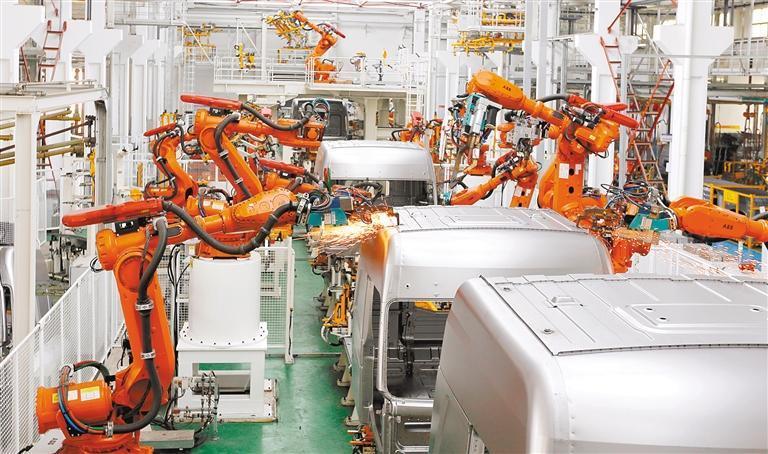 湖北齐星集团智能化车间,机械手臂飞舞,每2分钟就能造出一个驾驶操作台。随州专用汽车产业集群优势显著,年产近20万辆专用汽车,全产业链年产值超600亿元(摄于2020年4月)。 徐 斌摄(中经视觉)
