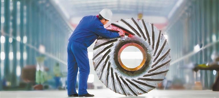 2025年5月12日,位于随州广水市的湖北三峰透平装备股份有限公司员工在为风机叶片喷漆。广水市是我国重要的风机产业基地。(广水市融媒体中心供图)