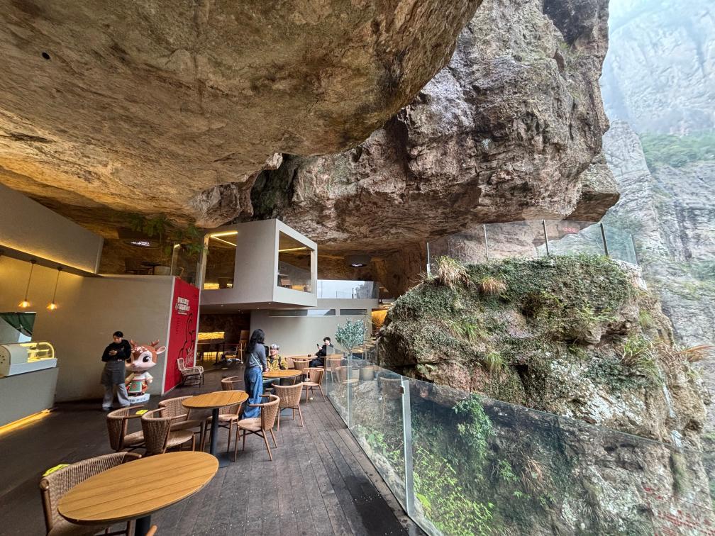 过去,游客登山看景,停留时间短,消费业态单一;如今,山岳风光不变,游玩体验已然不同——普通天然洞穴被创新打造成特色悬崖咖啡馆,一边是绝壁云海,一边是醇香咖啡,自然山水与休闲消费相融,相得益彰。