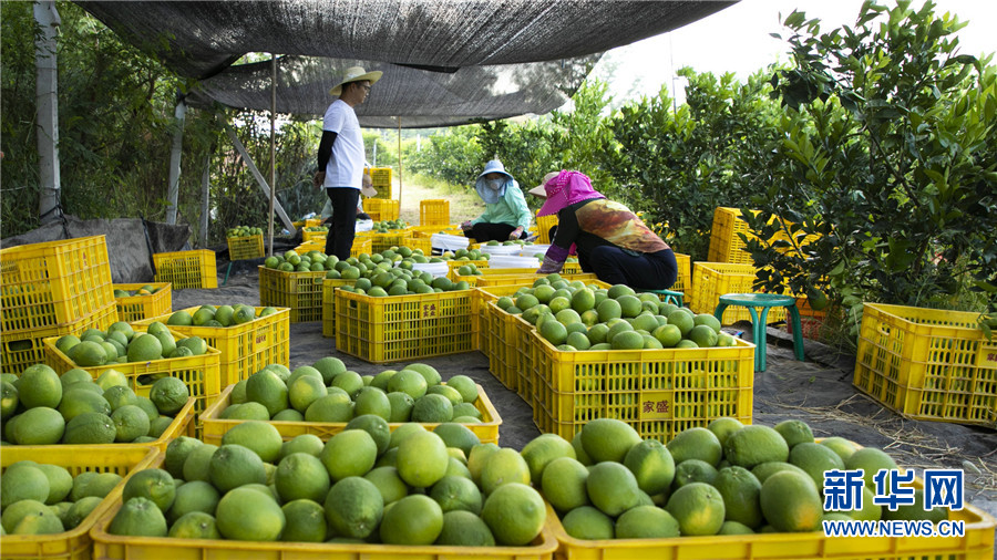 工人们正在分拣采摘好的脐橙(9月14日摄)。新华网发(文科 摄)