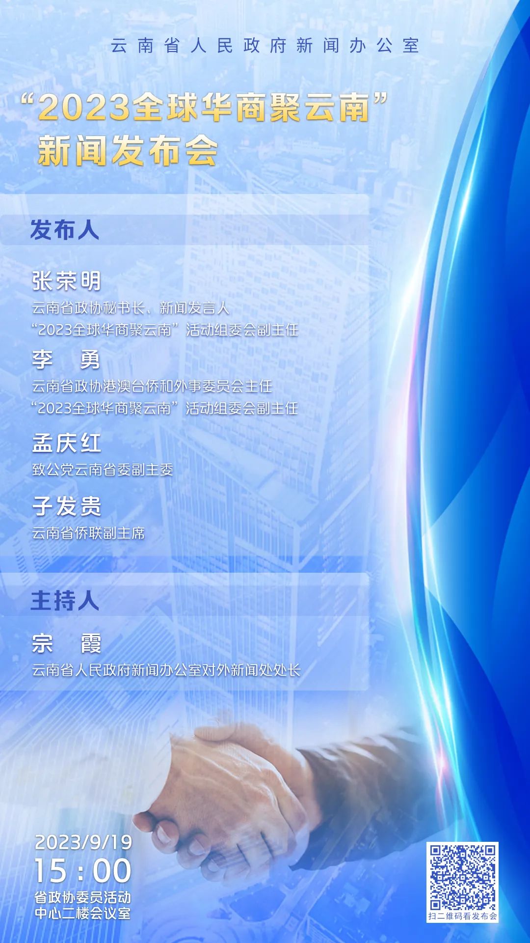 9月19日下午,云南省人民政府新闻办公室在省政协活动中心二楼会议室举行“全球华商聚云南”活动新闻发布会,介绍活动情况并回答记者提问。