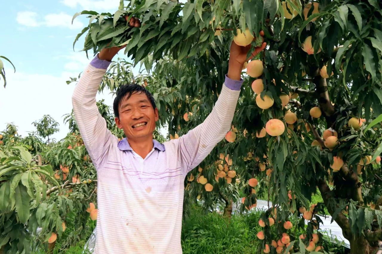 艾进财十多年前就开始经营果园,“那时候桃种植面积较少,我和家人采摘后拿到街上售卖。”艾进财回忆道,后来,他引进了新品种的桃,扩大了种植面积,还请了很多村民一起打理。