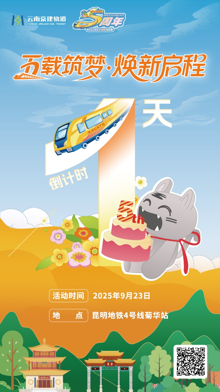2025年9月23日,昆明地铁4号线将以“五载筑梦·焕新启程”为主题,策划推出“文化+公益+体验”的多样化活动,邀全城市民共赴一场关于温度、速度与美好的约定。