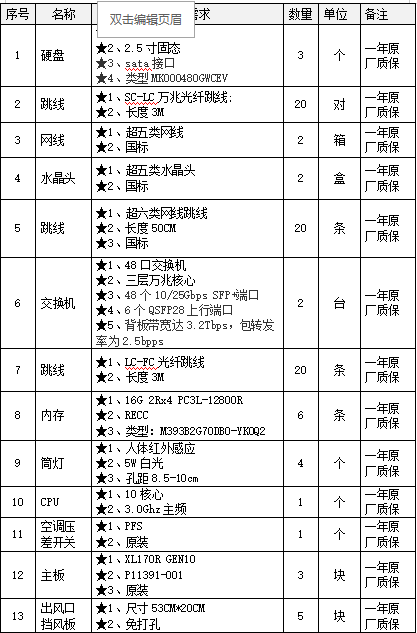 2.2采购内容:为充分利用老旧服务器交换机等设备资源及云报传媒广场数据中心照明设备出现自然损耗,申请采购一批硬盘、跳线、网线、内存业务板等配件设备一批。配件明细参见如下: