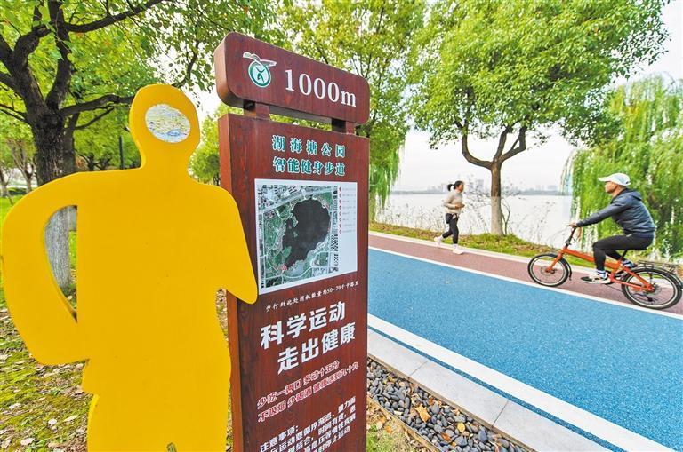 11月19日,浙江省金华市湖海塘公园,市民在智能健身步道上锻炼。近年来,该市在18个公园开展体育进公园提档改造,给市民带来全新的健身体验。胡肖飞摄(中经视觉)