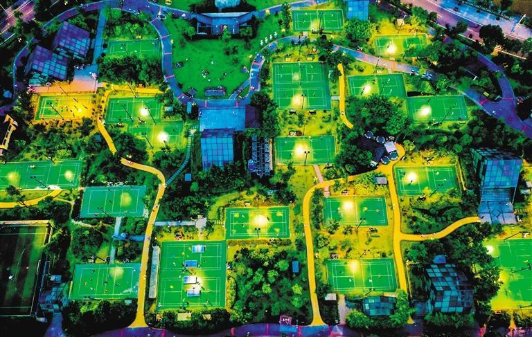 11月15日,重庆市万盛经开区,市民在智慧体育公园运动。市民可在线完成公园场馆预订,让运动更便捷。曹永龙摄(中经视觉)