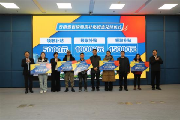 12月24日,云南省住房和城乡建设厅在昆明举行省级购房补贴资金兑付仪式暨线上房交会启动仪式,我省“彩云住房消费券”省级购房补贴完成首批集中兑付,兑付4474万元,惠及4791户购房家庭。省级职工住房资金管理中心、昆明市公积金中心、建设银行云南省分行、5个州(市)住房和城乡建设局及房协、27家房地产开发企业代表以及15名补贴申领人代表参加仪式。